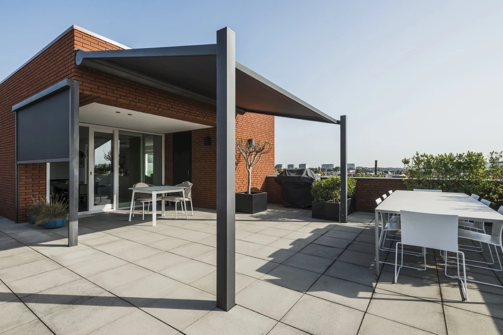 Keď je strešná clona Lapure® uzatvorená, poskytuje ochranu pred slnkom, vetrom a dažďom. Pri otvorenej streche si užívate slnko na terase, alebo v záhrade bez akejkoľvek manipulácie s konštrukciou.