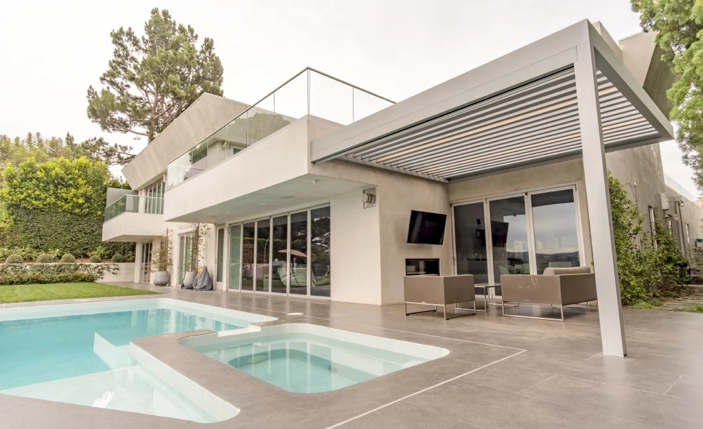 Toto štýlové hliníkové prestrešenie s vodorovnou strechou odolávajúcou vode, vetru a slnku zmení Vašu terasu na príjemný vonkajší priestor. Vďaka jednoduchému ovládaniu a tichému chodu strešných lamiel si v každom okamihu zabezpečíte ideálny pomer osvetlenia a vetrania.